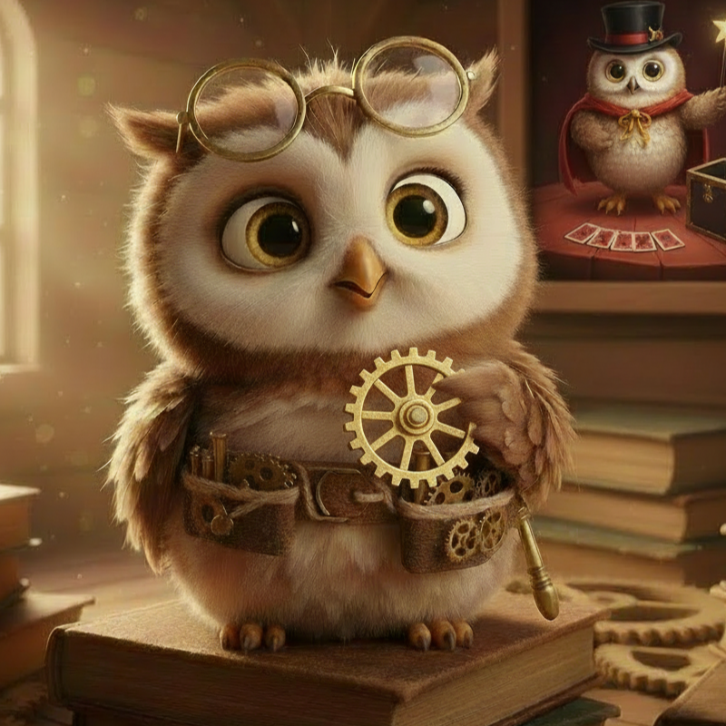 Lou-Lou is a clever young owl who fixes things with patience, tools, and lemon-drop wisdom. When things get sticky, he sticks with them.